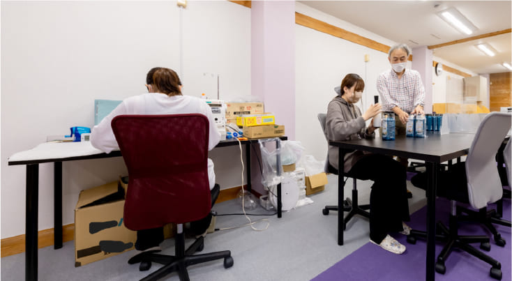 グループ会社のサテライトオフィスを活用し、事業所内とは違う内職作業や清掃等の機会を作っています。